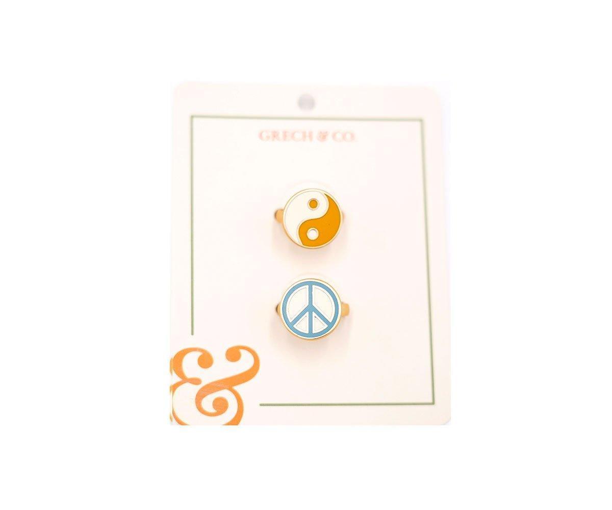 2 Anéis Esmaltados Ying Yang+ Peace Sign