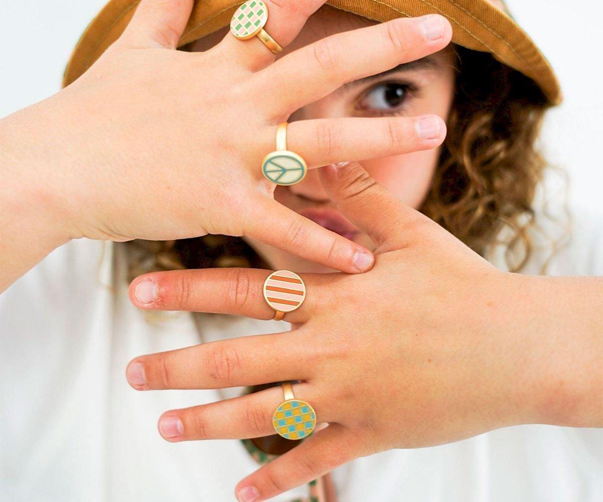 2 Anéis Grech & Co feitos com liga metálica banhada a ouro ecológica.