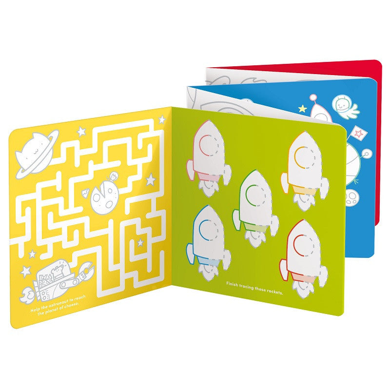 Este conjunto criativo inclui 2 livros sanfonados longos com 2 imagens panorâmicas para colorir junto com muitos exercícios criativos e educativos.
